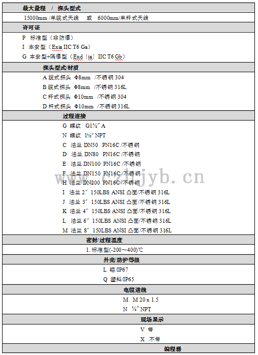 外殼                                            鋁,塑料,不銹鋼316L