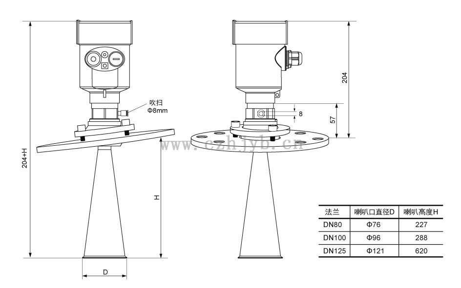 ● 天線尺寸小,便于安裝;非接觸雷達,無磨損,無污染。