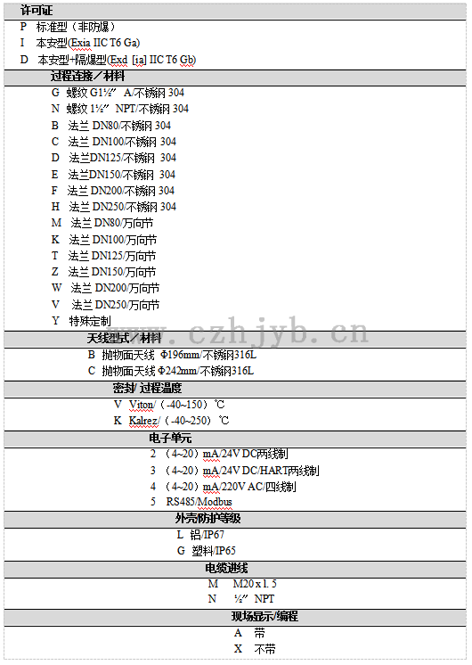 過(guò)程溫度(天線部分的溫度)                        (-40~250)℃